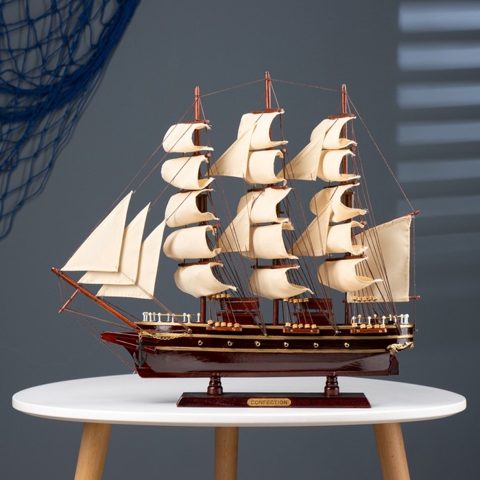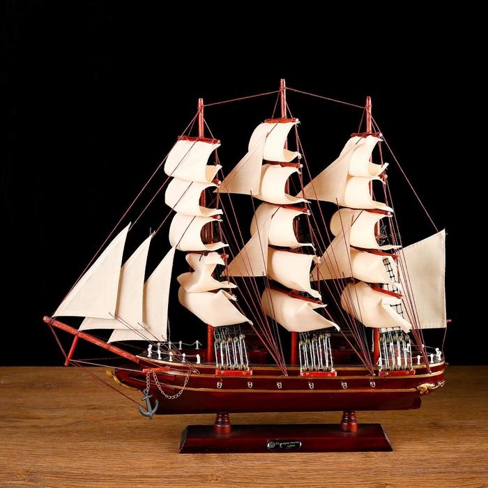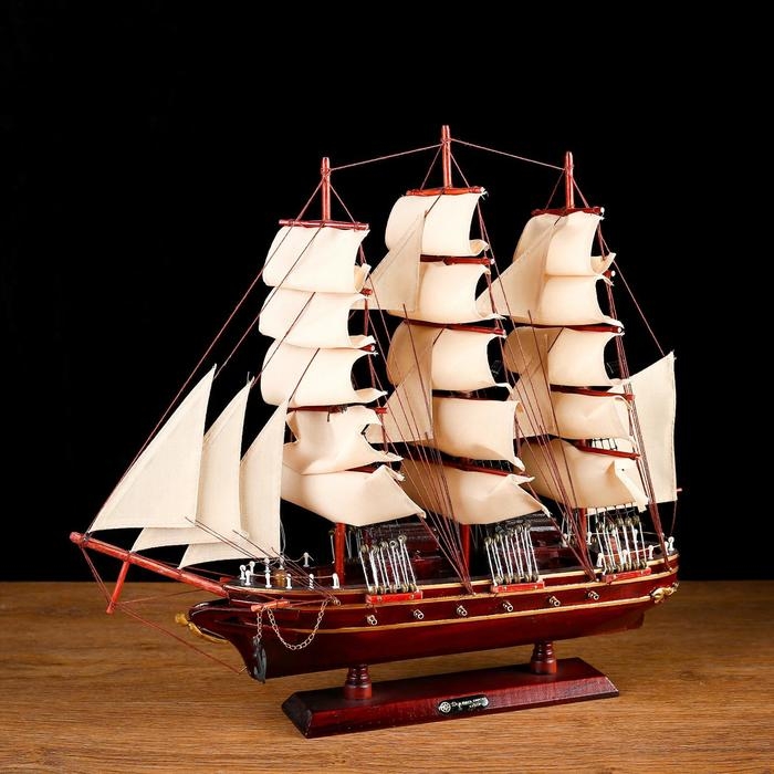 Корабль сувенирный «Бреслау», трёхмачтовый, под тёмное дерево, паруса бежевые, 49х43х8 см