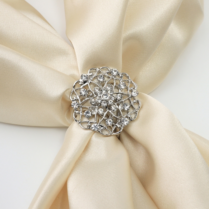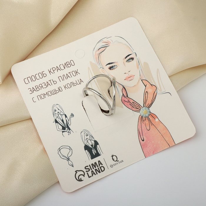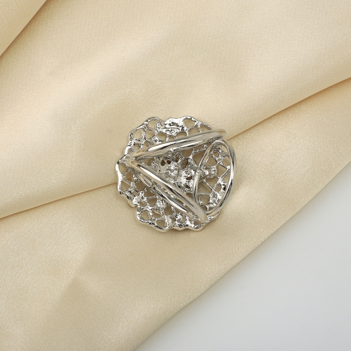 Кольцо для платка «Ажур» цветы, цвет белый в серебре