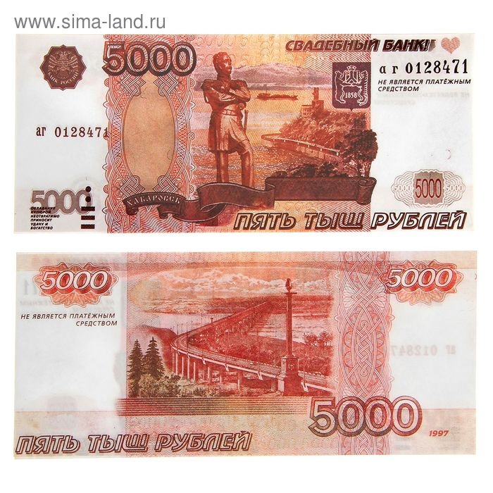 Пачка купюр для выкупа на свадьбу «5000», (набор 80 шт) 15 х 6 см.