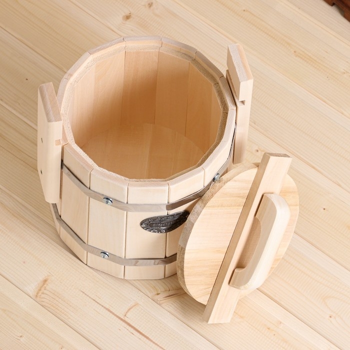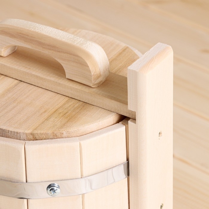 Кадка-бочка для засолки из липы, 5 л, нержавеющий обруч, с крышкой, "Добропаровъ"