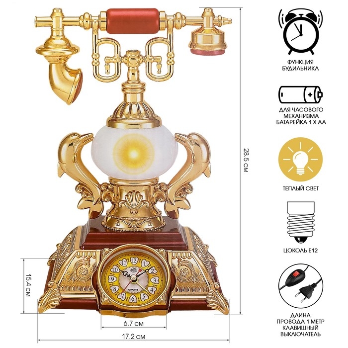 Часы-светильник "Ретро телефон", с будильником, 28.5 х 18 х 18 см