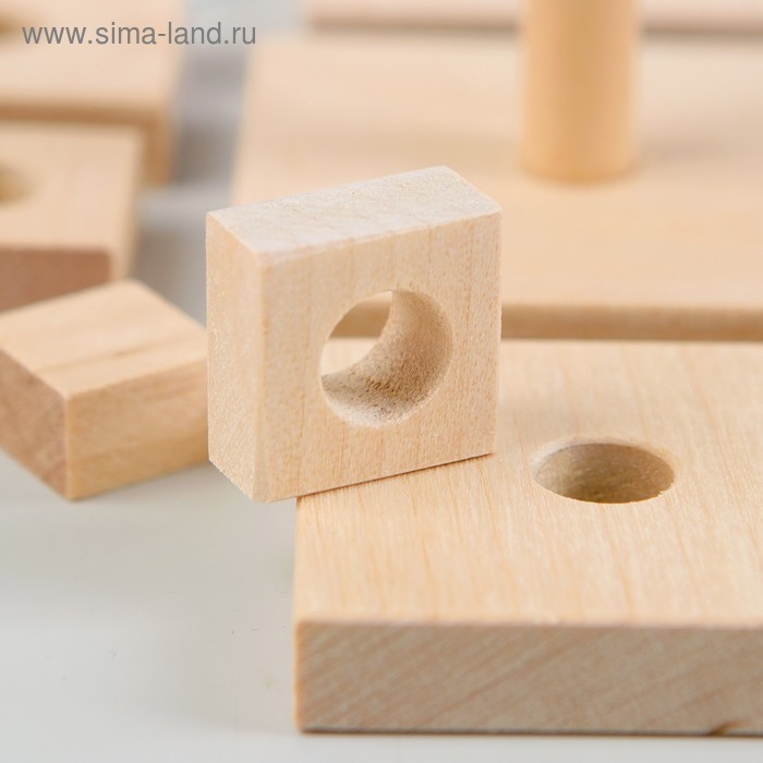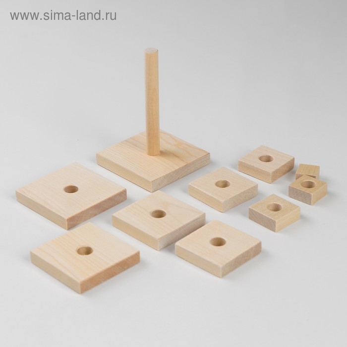 Изделие выполнено из дерева, что говорит о его долговечности и прочности. Содержит 11 неокрашенных элементов. Чтобы игра была увлекательнее, сделайте детали разноцветными, так ребёнку будет интереснее собирать их вместе.