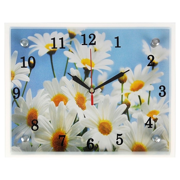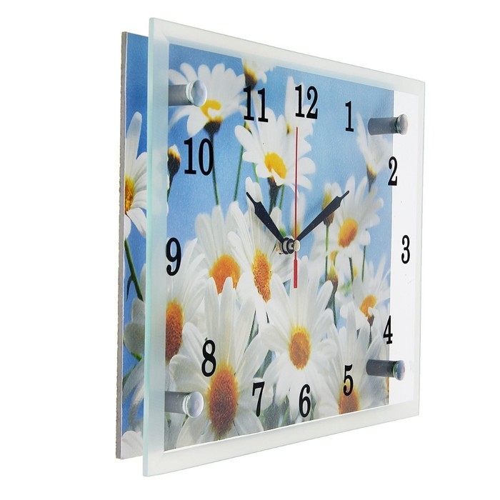 Часы-картина настенные, интерьерные "Ромашки", бесшумные, 25 х 20 см