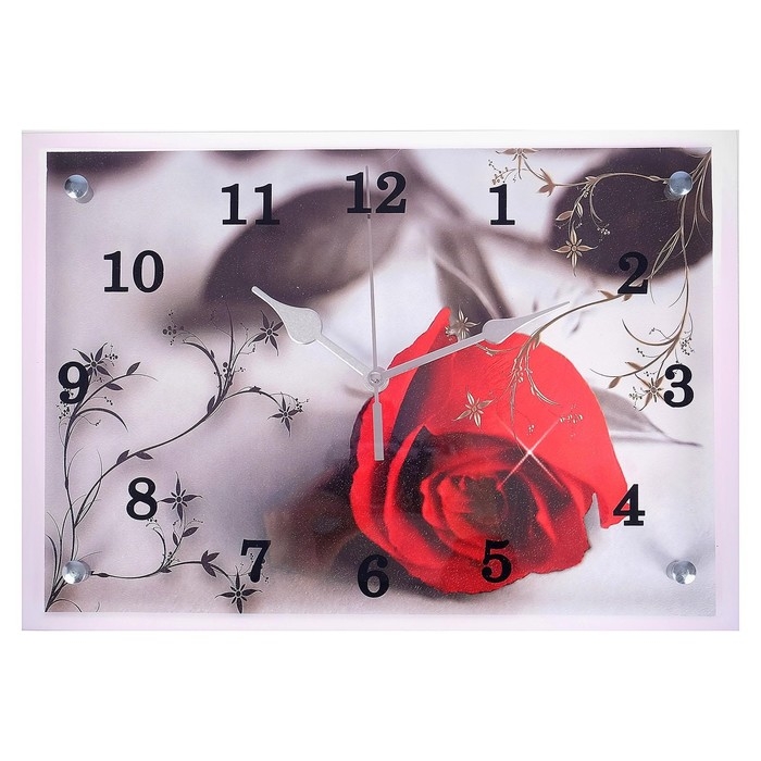 Часы-картина настенные, интерьерные "Красная роза на сером", бесшумные, 25 х 35 см