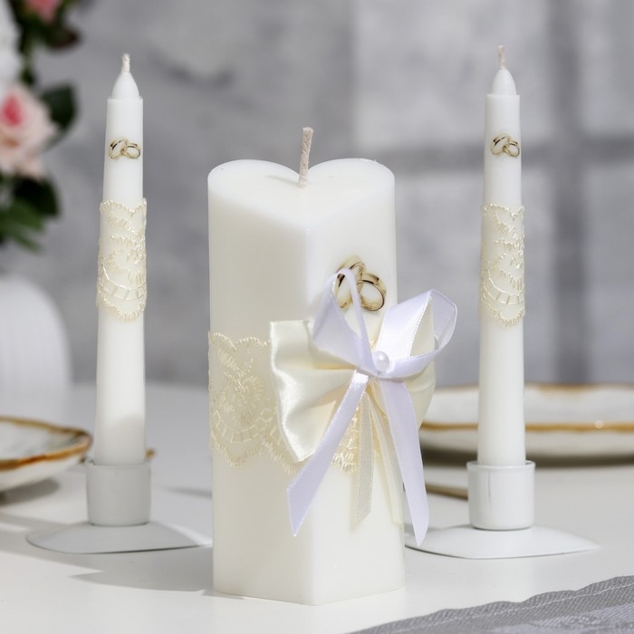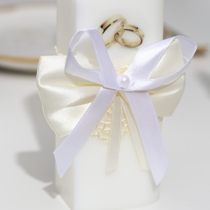 Набор свечей "Кружевной с бантиком" шампань: домашний очаг 6,8х15см, родительские 1,8х17,5см