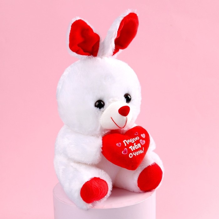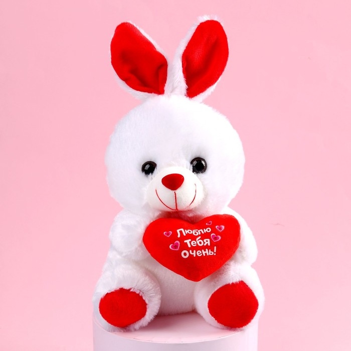 Эта очаровательная мягкая игрушка вызовет добрые и трепетные чувства у близкого человека. Милый, нежный зайка из мягкого, приятного на ощупь искусственного меха станет отличным сюрпризом. У него дружелюбное выражение мордочки, милые ушки и озорные глазки. В лапках он держит сердечко с надписью, которое подчеркнёт ваши чувства. Он порадует детей и взрослых.