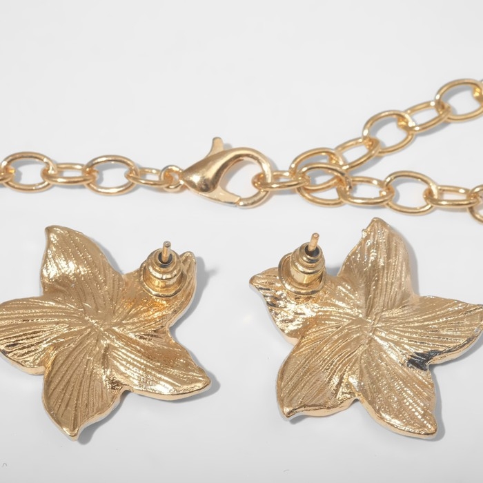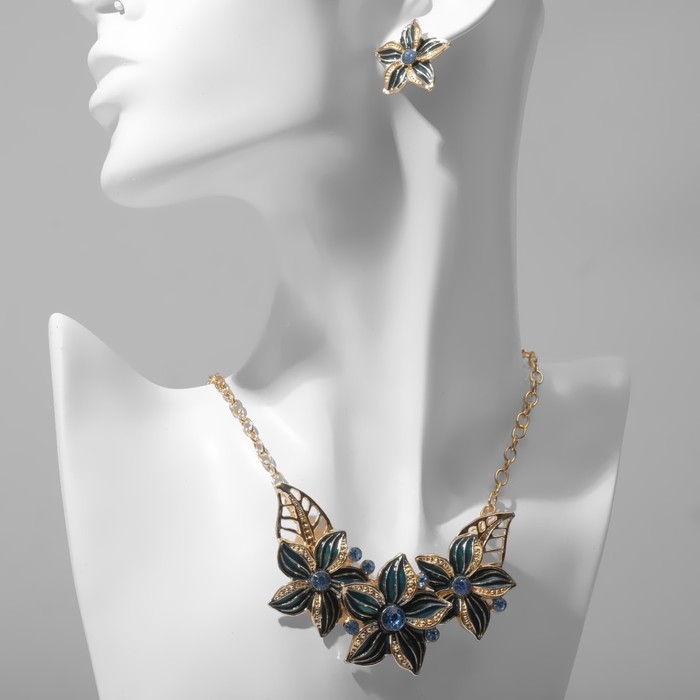 Набор 2 предмета: серьги, колье «Цветы» трио, цвет синий в золоте, 45 см