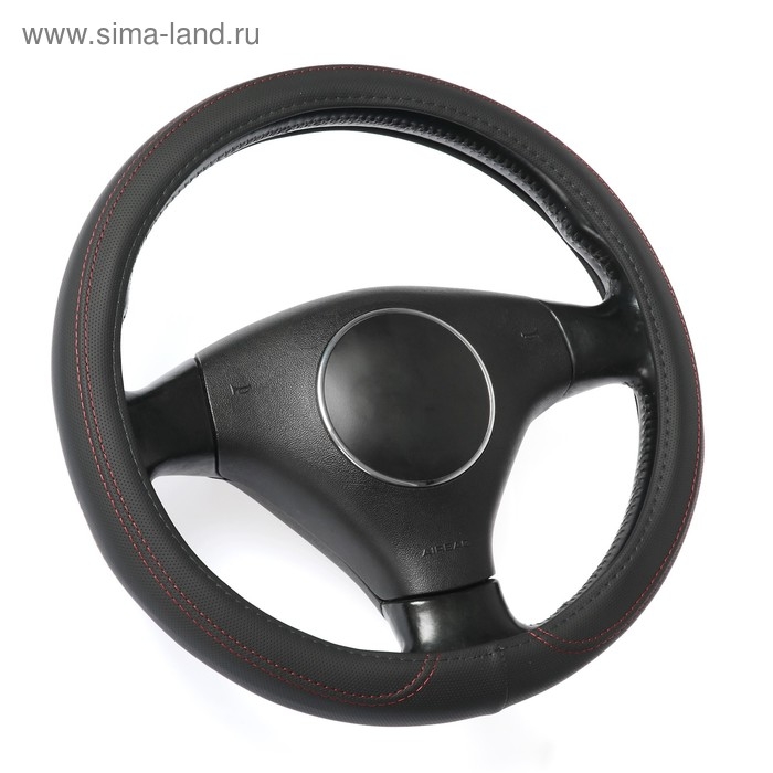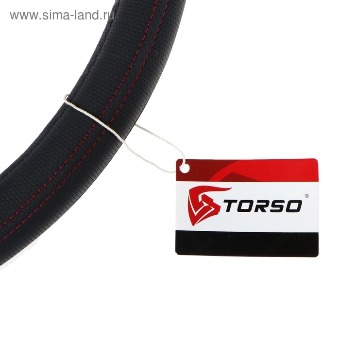 Оплетка на руль TORSO, кожа PU, перфорация, размер 38 см, красная строчка, черный