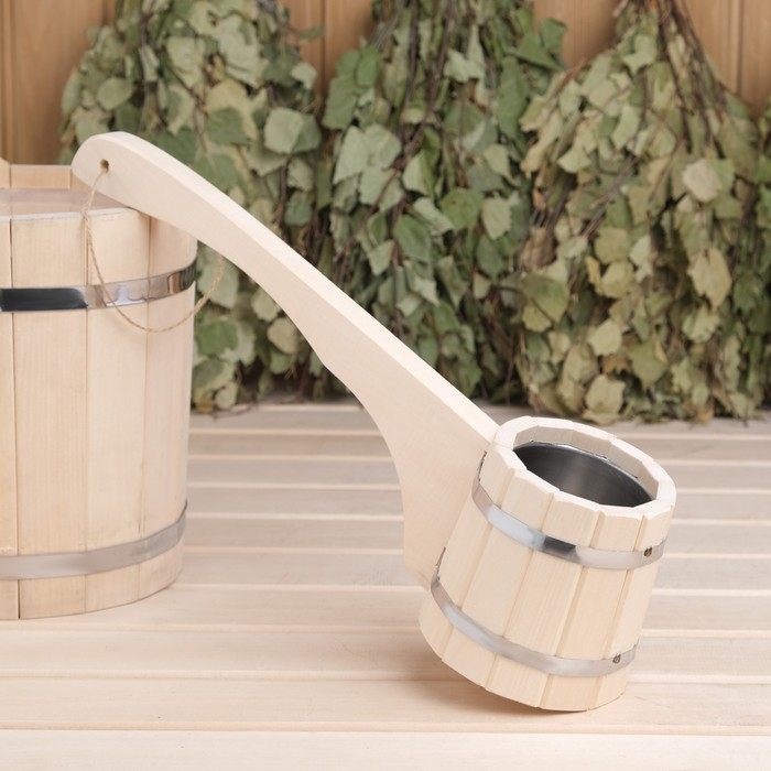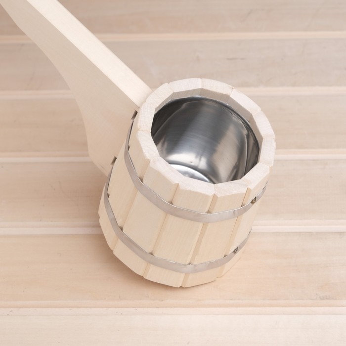 Ковш для бани из липы 0.9л, 51 см, нержавеющая вставка, с горизонтальной ручкой