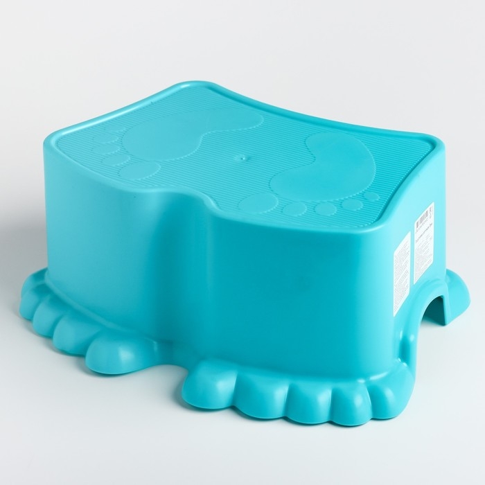 Рельефный узор в виде забавных пяточек, защитит ножки малыша от скольжения по поверхности табуретки-помощника.