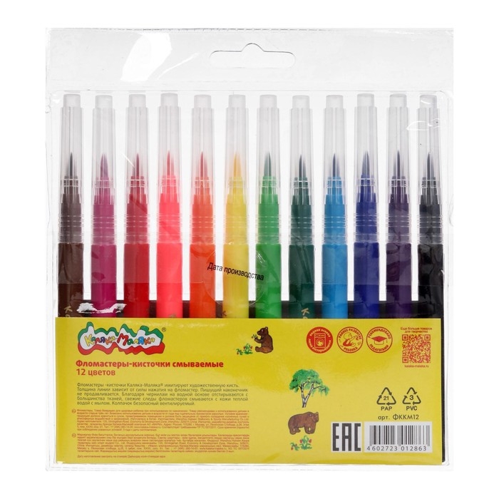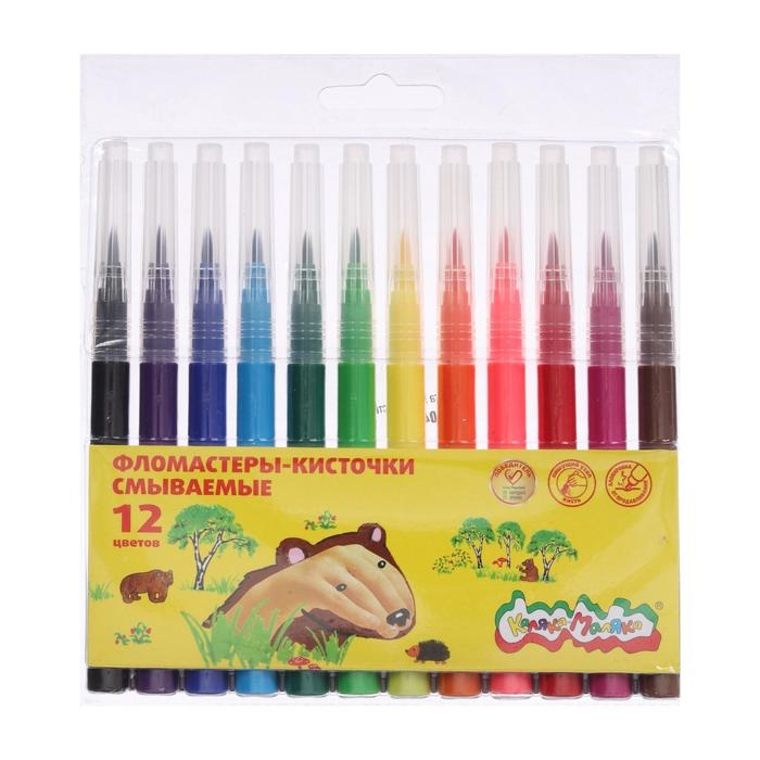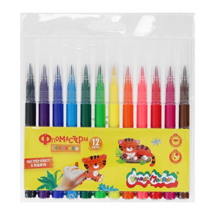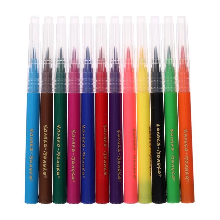 Фломастеры-кисти 12 цветов "Каляка-Маляка", вентилируемый колпачок