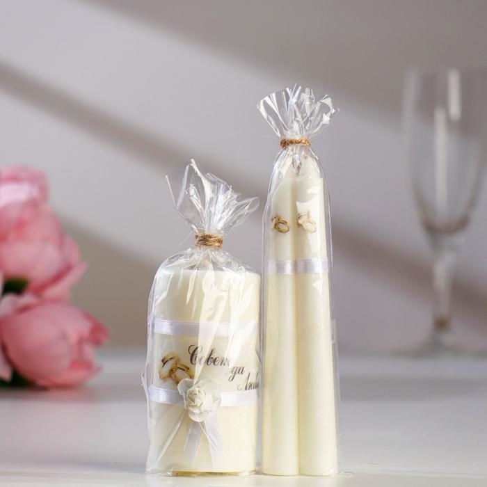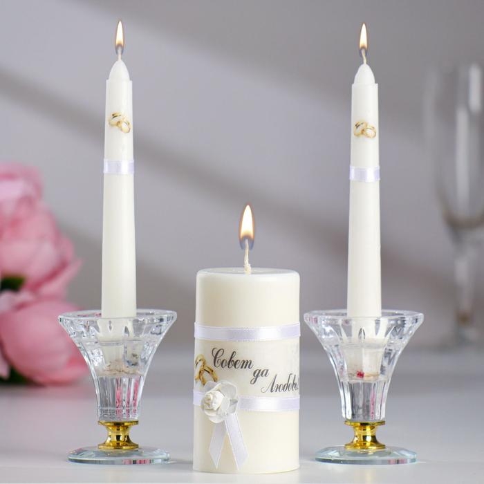 Набор свечей свадебных "Совет да любовь с розой "белый: родительские 1,8х15; очаг 5х9,5 см