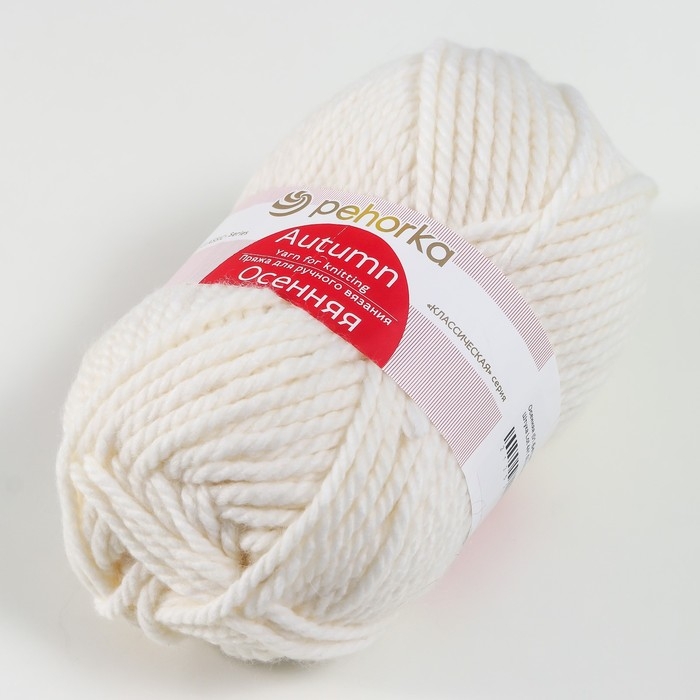 Пряжа для вязания спицами, крючком «Пехорский текстиль. Осенняя», 25% шерсть, 75% ПАН, 150 м/200 г, (01 белый)