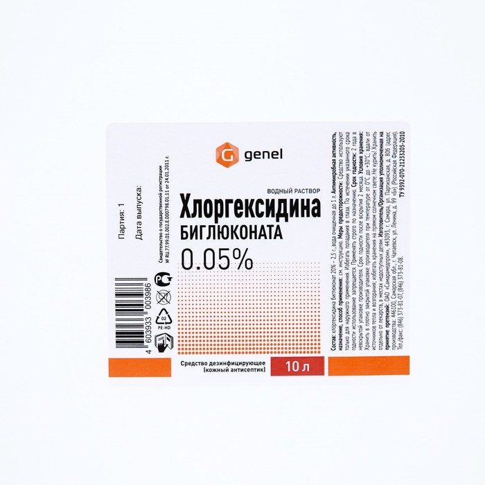Хлоргексидина биглюконат раствор 0,05% средство дезинфицирующее, 5 л