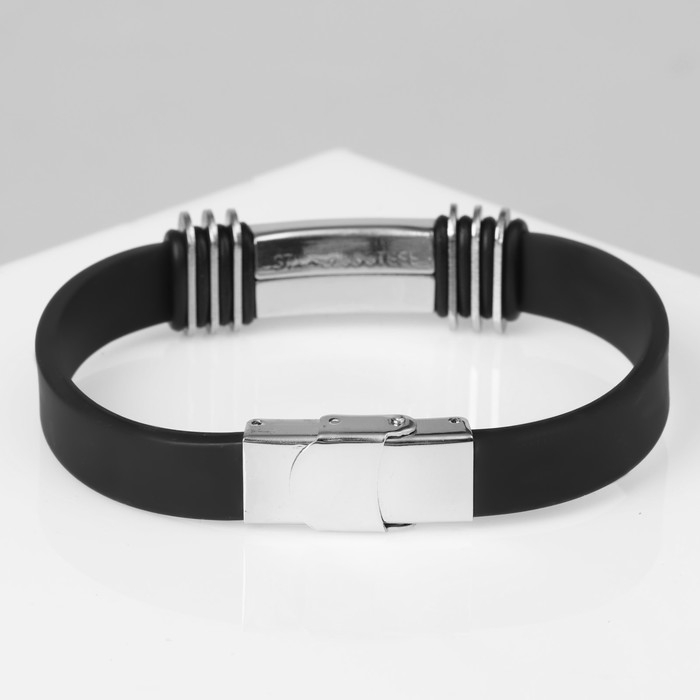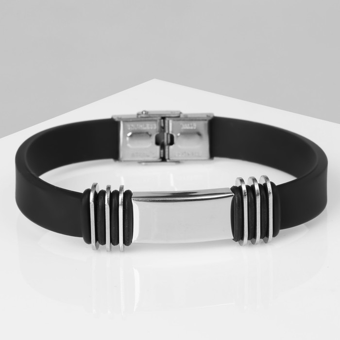Браслет унисекс «Стиль» прямоугольник с тройными вставками, цвет чёрный с серебром, 23 см