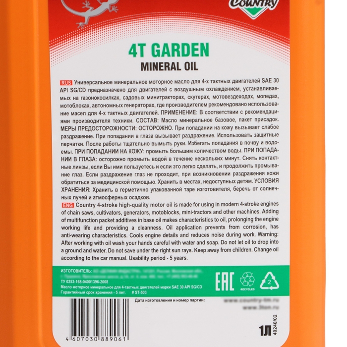 Масло четырехтактное Country минеральное SAE 30 SG/CD, 1 л