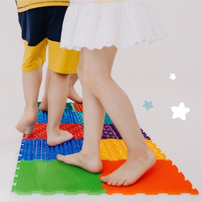 Ортопедическое напольное покрытие состоит из отдельных модулей, которые соединяются между собой по принципу пазла. По массажному коврику можно ходить или выполнять упражнения, стоя на нём. Во время занятий стимулируются рецепторы на стопе и формируются её физиологические своды. Изделие применяется для профилактики плоскостопия у детей, массажа стоп и снятия усталости ног.