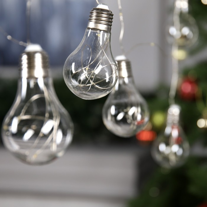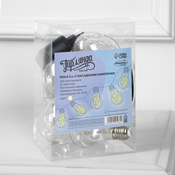 Гирлянда «Нить» 3 м с насадками «Лампочки», IP20, серебристая нить, 100 LED, свечение тёплое белое, 3.5 В