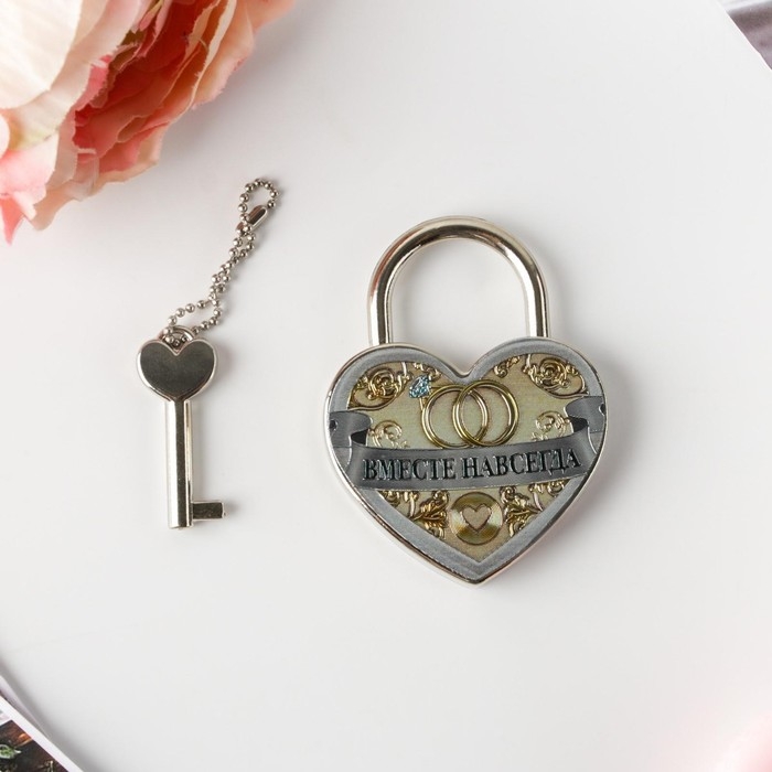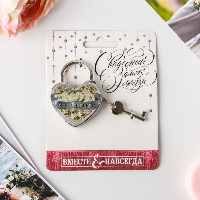 Замок для торжественной свадебной традиции - это символ любви. Навесной замок любви на свадьбе становится символом нерушимого союза, заключенного влюбленными в этот день. По традиции замок вешается на мост, загадывается желание о счастливой семейной жизни, а ключи от него выбрасываются в реку, через левое плечо. Это делается для того, чтобы никто никогда не смог открыть этот замок и нарушить клятву, данную влюбленными. Свадебный замок можно повесить на мост по традиции или на дерево в специалных парках или аллеях молодожен, которые есть во многих городах. Замок навесной свадебный имеет в комплекте ключик, замок закрывается и открывается. Традиция закрывать замок на свадьбу объединяет сердца мужа и жены навсегда. Свадебный декоративный замочек будет отлично смотреться на фотосессии и видео.