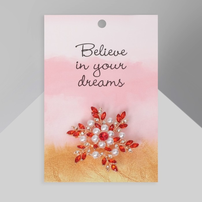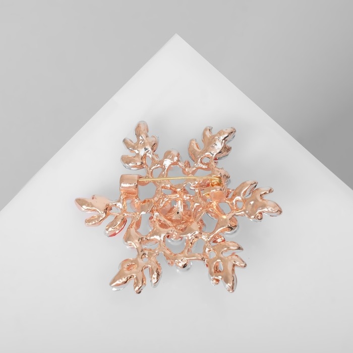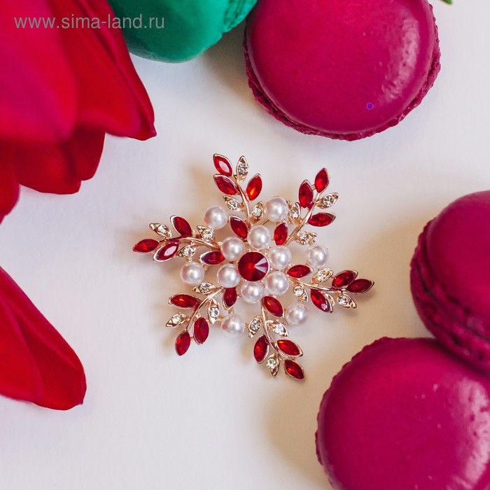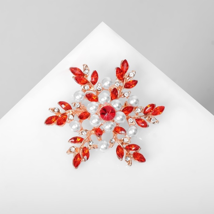 Брошь «Цветок» полярный, цвет красно-белый в розовом золоте