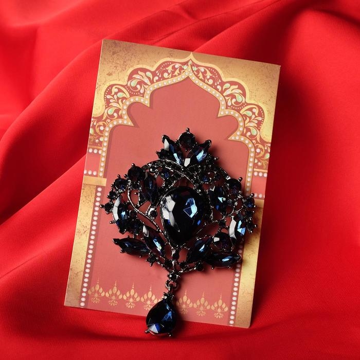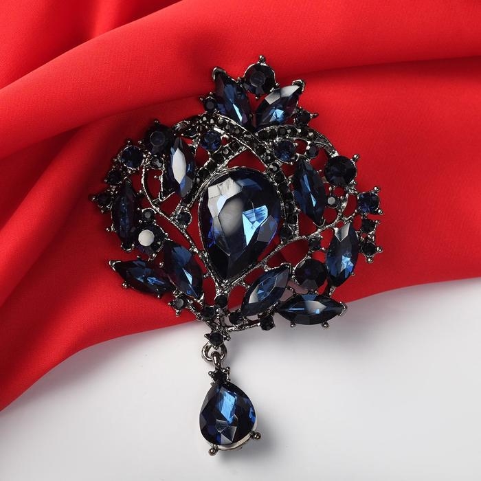 Брошь «Императорская», цвет синий в сером металле
