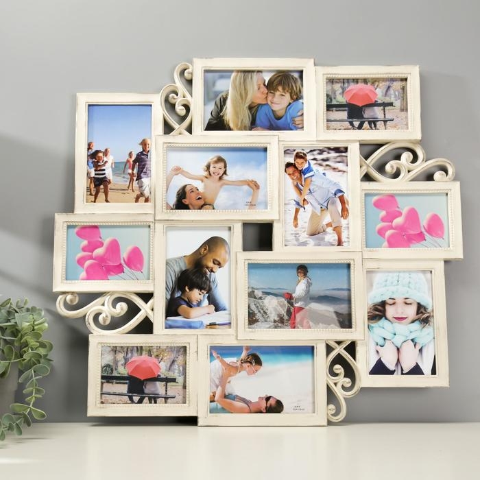 Фоторамка пластик на 12 фото 9х13, 10х15 см "Коллаж воспоминаний" бежевая 51х54,5 см
