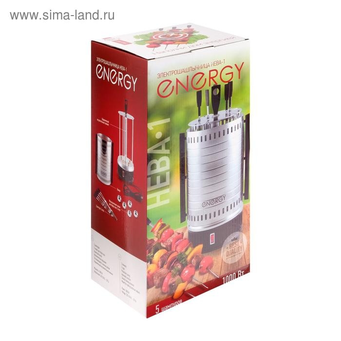 Электрошашлычница ENERGY НЕВА-1, 1000 Вт, 5 шампуров, серебристая