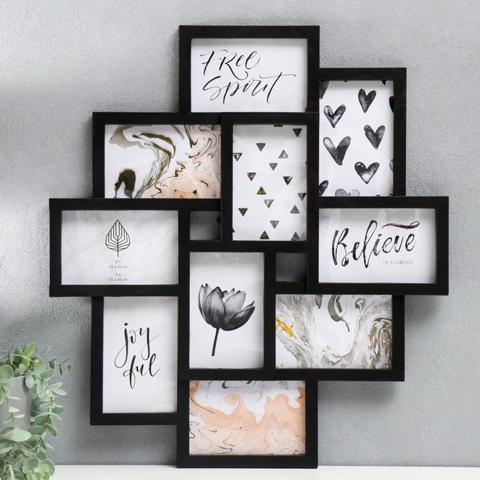 Фоторамка пластик на 10 фото 10х15 см "Пассаж" чёрная 55х48,5 см