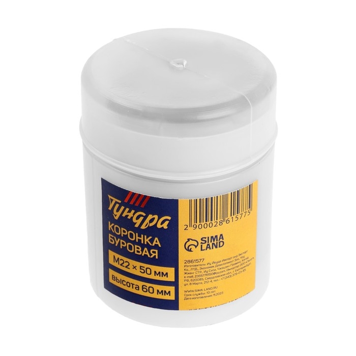 Коронка буровая ТУНДРА, высота 60 мм, М22 х 50 мм
