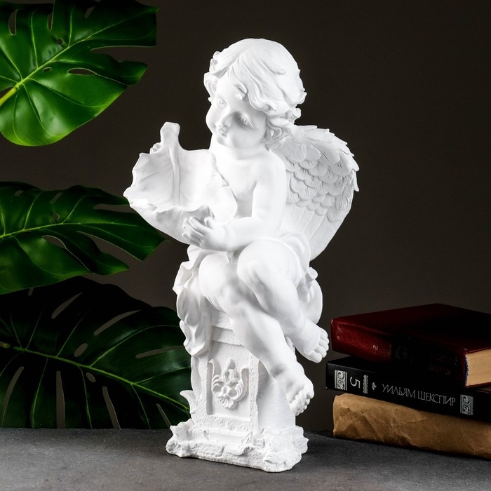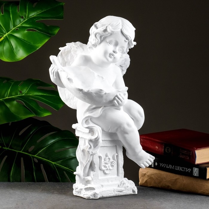 Фигура "Ангелочек с чашей" белый, 13х15х43см
