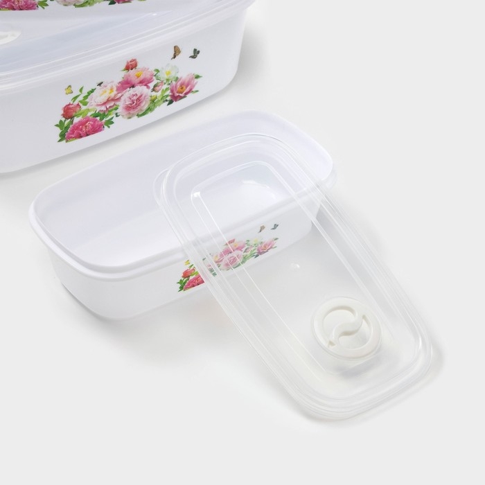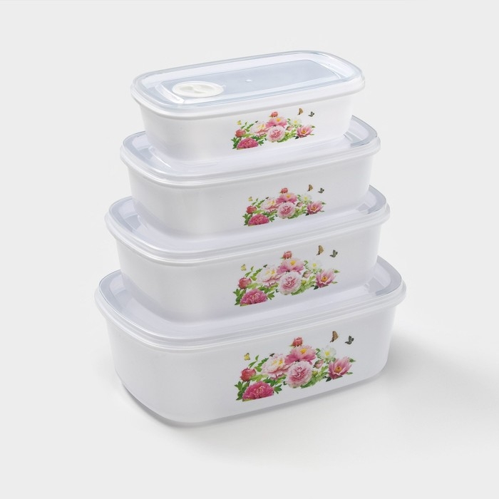 Набор ланч-боксов пластиковых «Розы», 4 шт: 400 мл, 650 мл, 1 л, 1,5 л, цвет белый