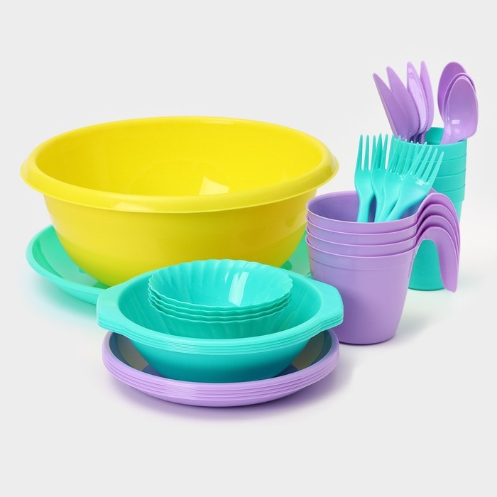 Набор посуды для пикника на 6 персон «Все за стол – 2», 52 предмета, цвет МИКС