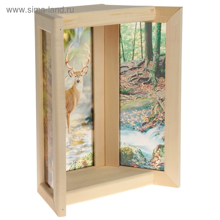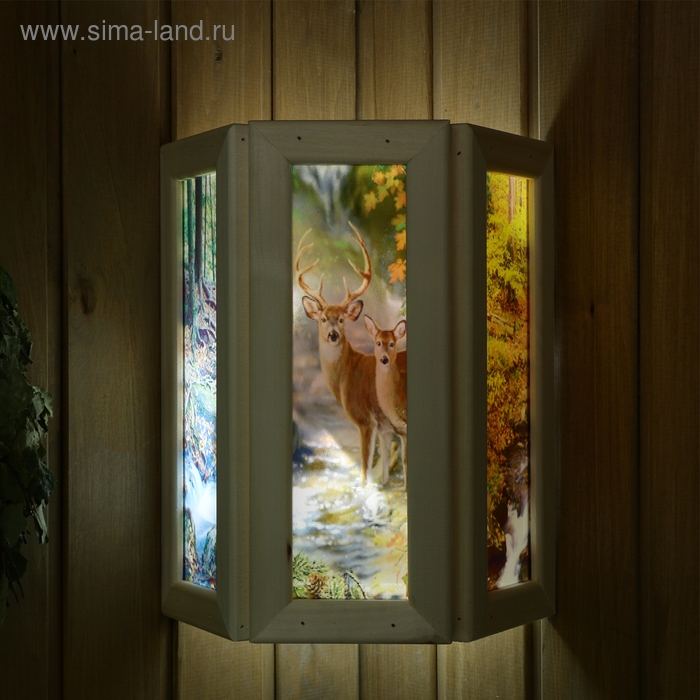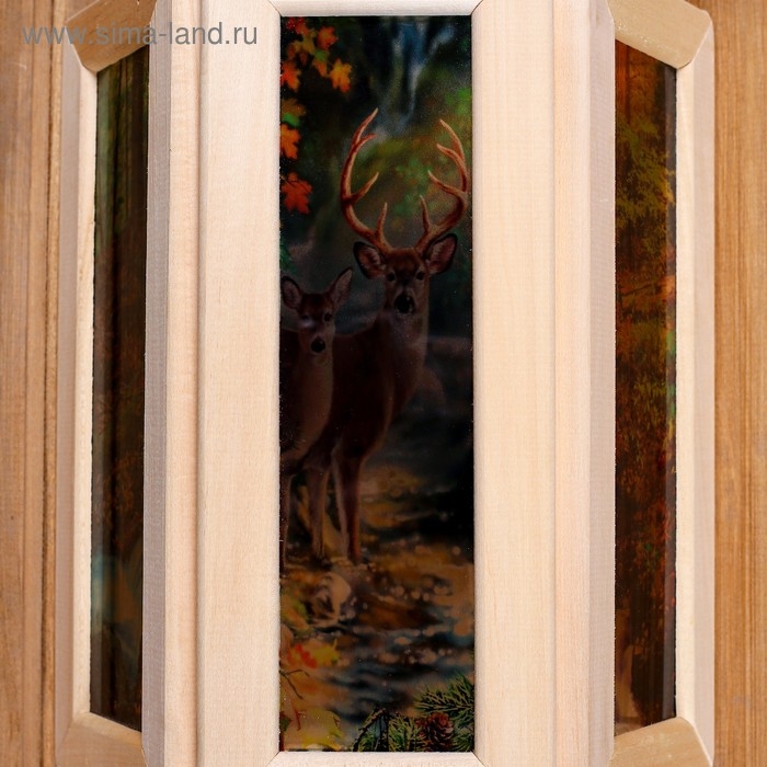 Абажур деревянный "Олени" со вставками из стекла с УФ печатью, 33х29х16см