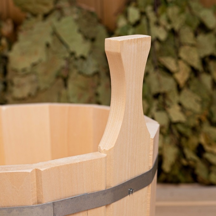 Шайка из липы, 15 л, круглая, нержавеющий обруч, "Добропаровъ"