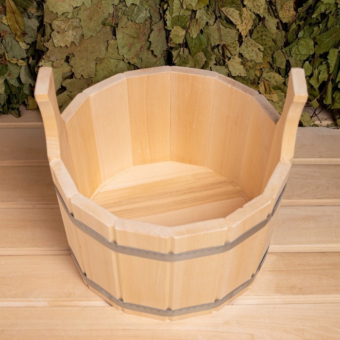 Шайка из липы, 9 л, круглая, нержавеющий обруч