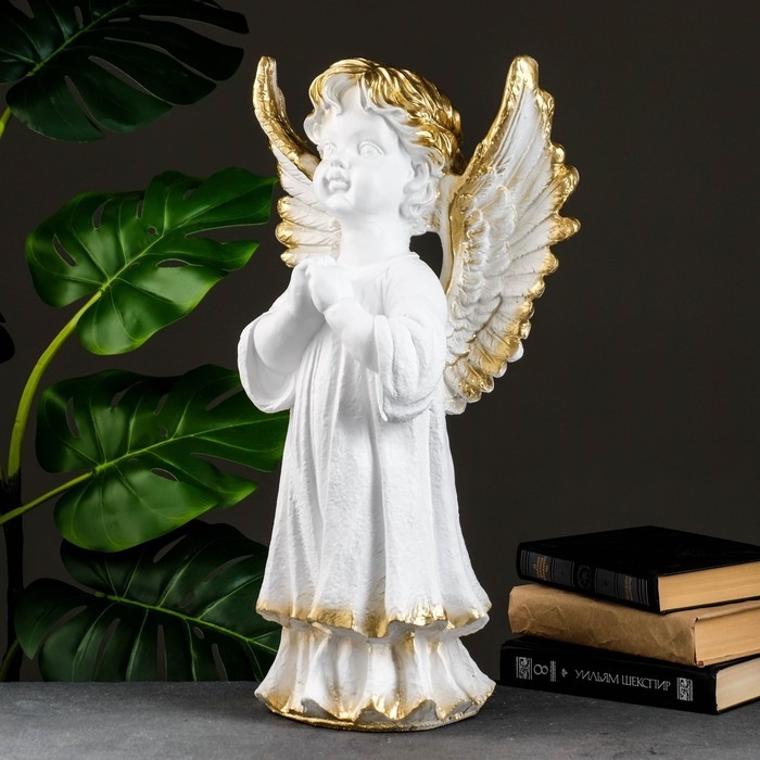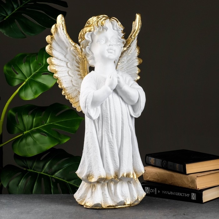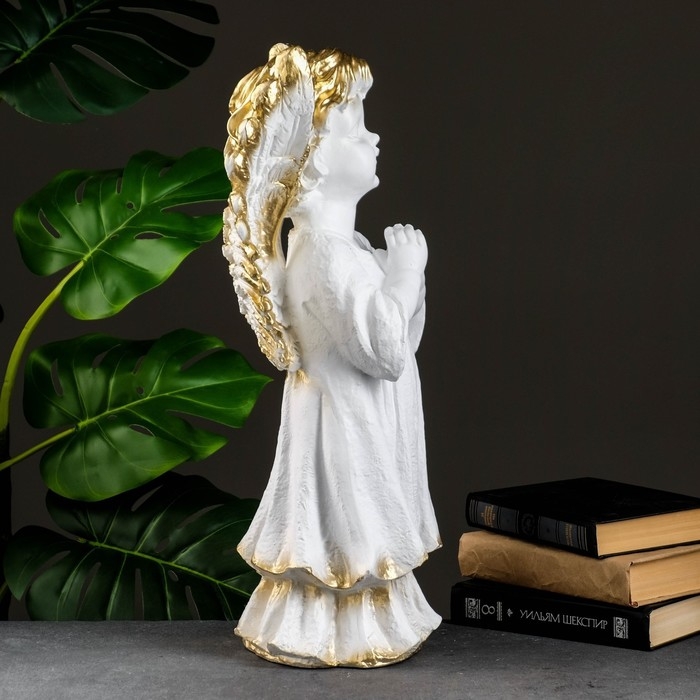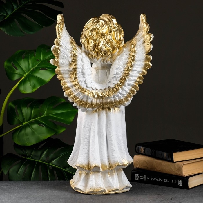 Фигура "Ангел молящийся большой" белое золото 53х30х20см