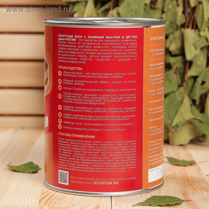 Лоскутный Воск с льняным маслом и дёгтем – это пропитка для наружного применения. Состоит из натуральных компонентов. Благодаря растворяющему действию живичного скипидара состав глубоко проникает в древесину, льняное масло, полимеризуясь на поверхности на поверхности, создает дышащую защитную пленку на длительный период, дёготь придает дополнительные антисептические свойства покрытию и защищает от насекомых – вредителей.