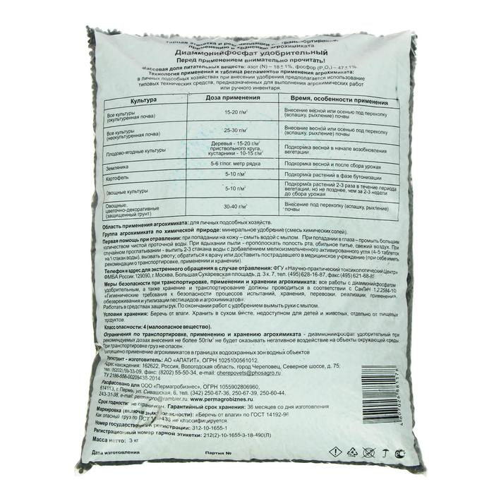 Удобрение минеральное Диаммонийфосфат (Суперфосфат двойной), 3 кг