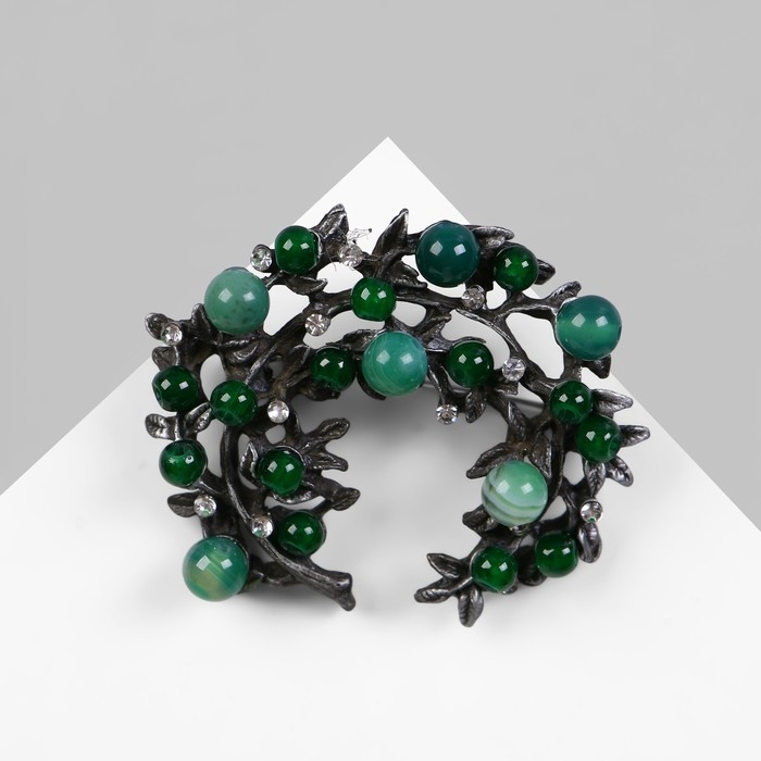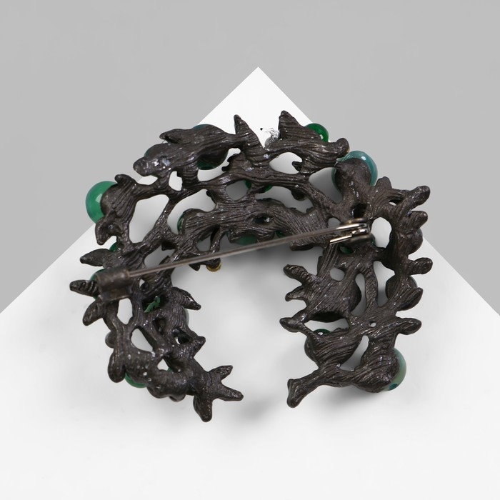 Брошь «Ветвь агата», цвет зелёный в сером металле