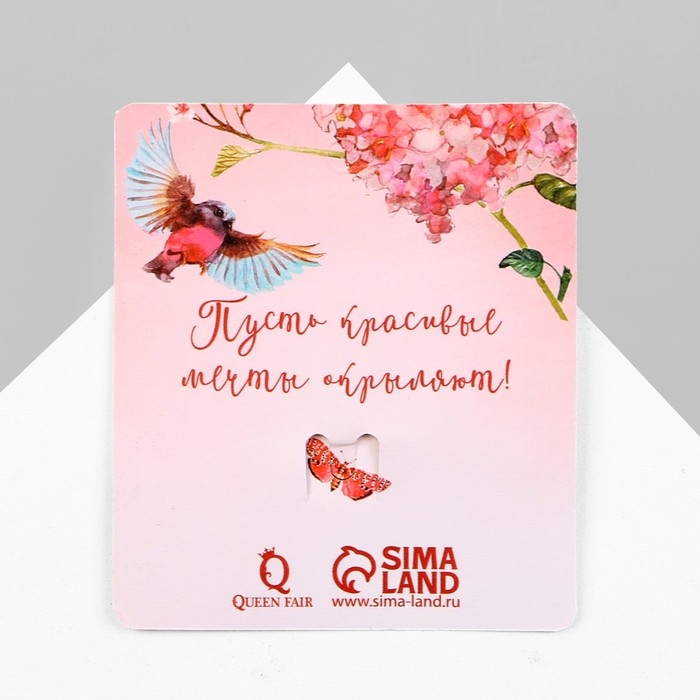 Брошь «Галиотис» бабочка со сложенными крылышками, цвет бело-зелёный в розовом золоте
