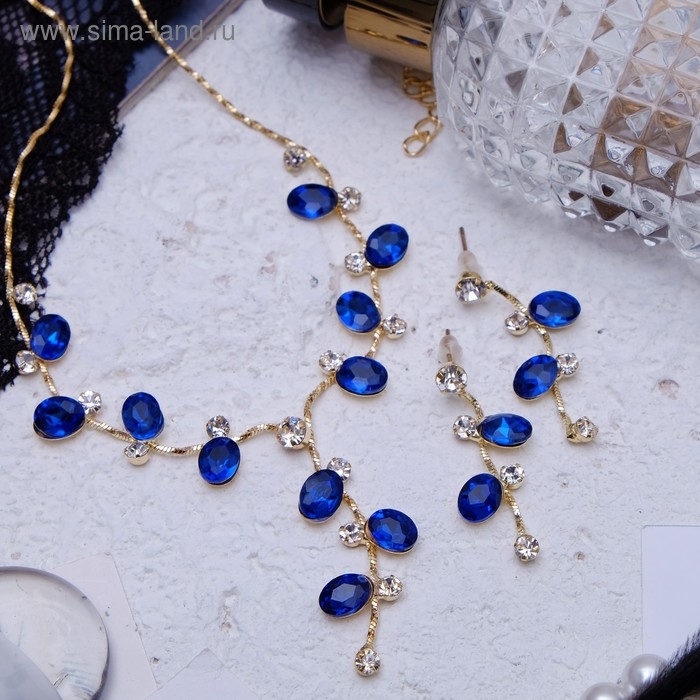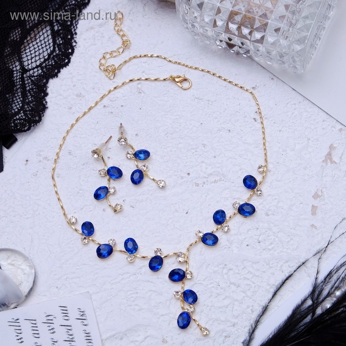 Набор 2 предмета: серьги, колье «Изумление» цветение, цвет сине-белый в золоте, 42 см