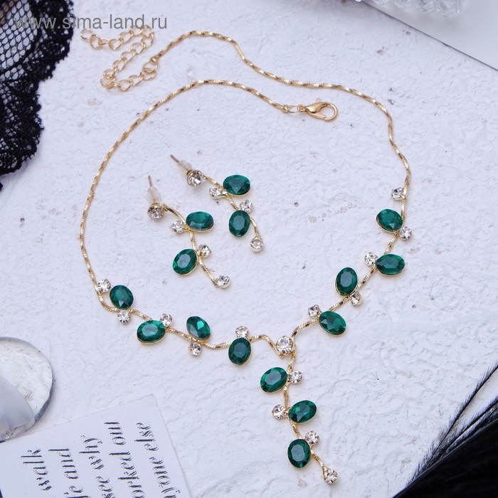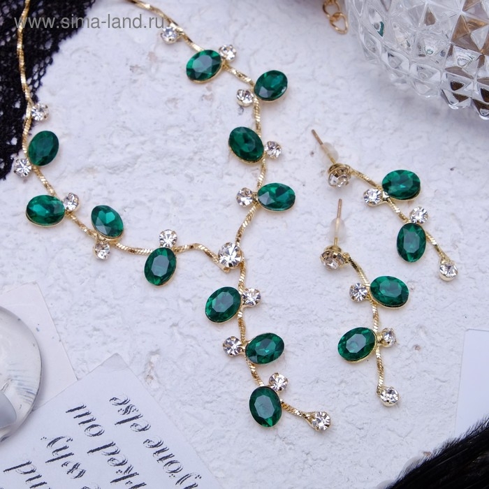 Набор 2 предмета: серьги, колье «Изумление» цветение, цвет зелёно-белый в золоте, 42 см