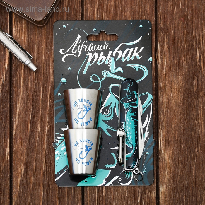 Набор «Лучший рыбак», нож мультитул, стопки 30 мл, 2 шт.