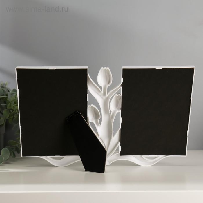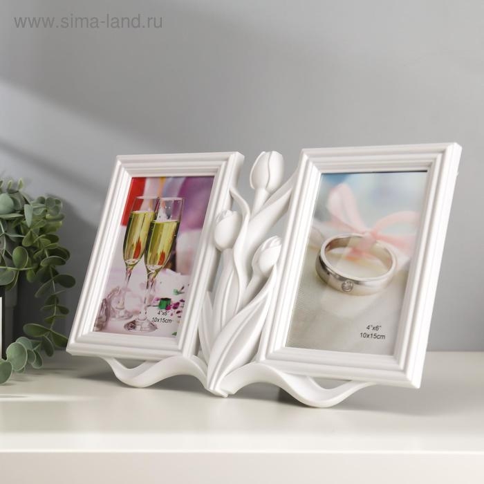 Фоторамка пластик на 2 фото 10х15 см "Тюльпаны" белая 20х31 см