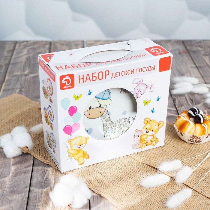 Набор посуды фарфоровой «Зоопарк», 3 предмета: тарелка d=20 см, салатник d=19,8 см, кружка 200 мл