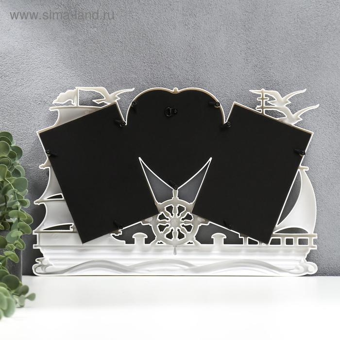 Фоторамка пластик на 3 фото 10х15, 12х12 см "Корабль" белая 25х40 см