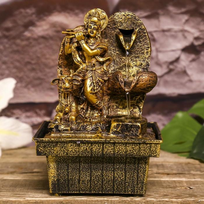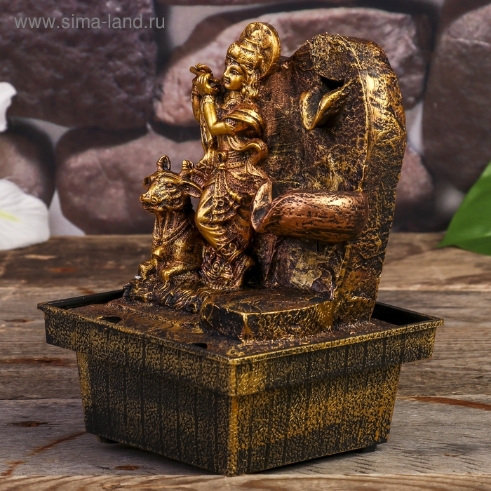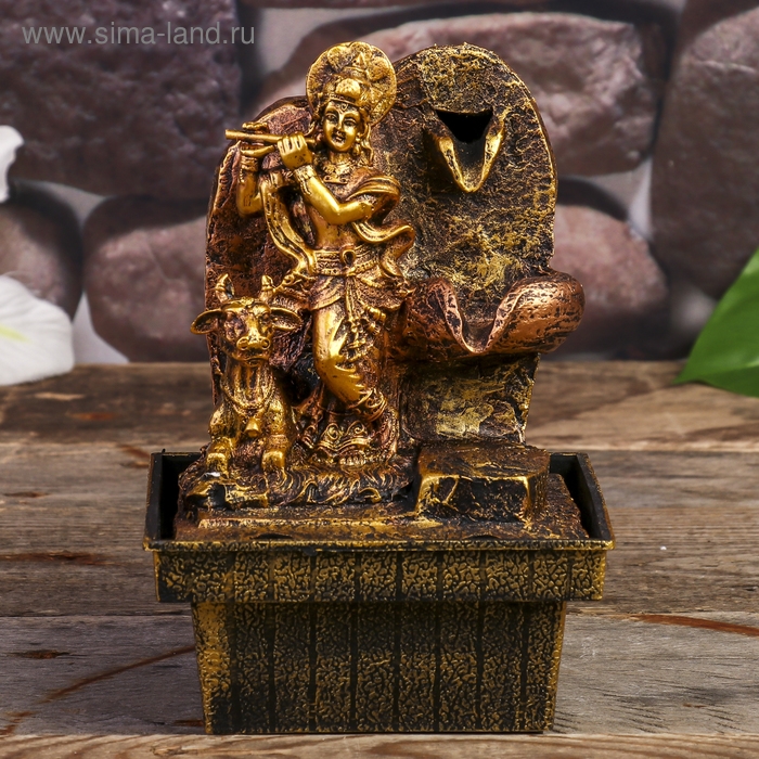 Фонтан настольный от сети "Кришна и корова" 18х12х12 см