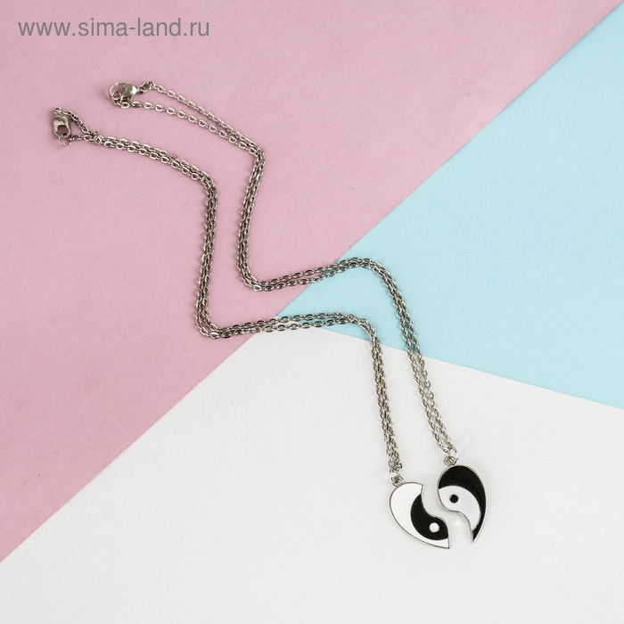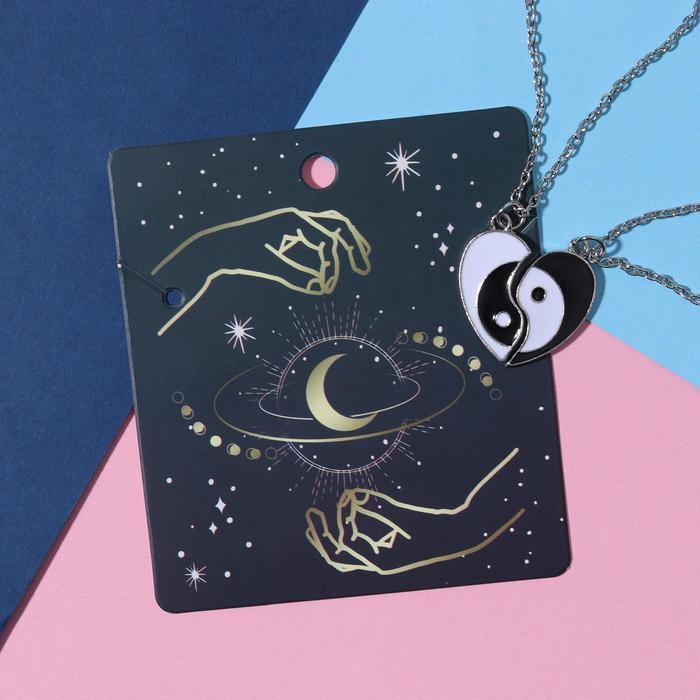 Кулоны на отрывной карточке «Неразлучники» сердце инь-янь, цвет чёрно-белый в серебре, 45 см