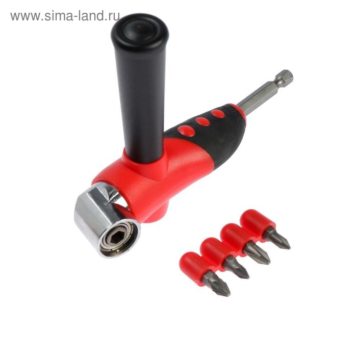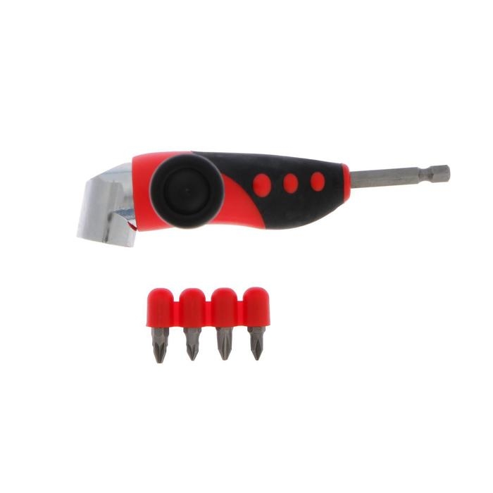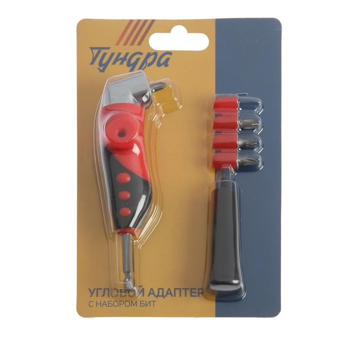 Адаптер угловой для дрели ТУНДРА, с набором бит 4 шт.