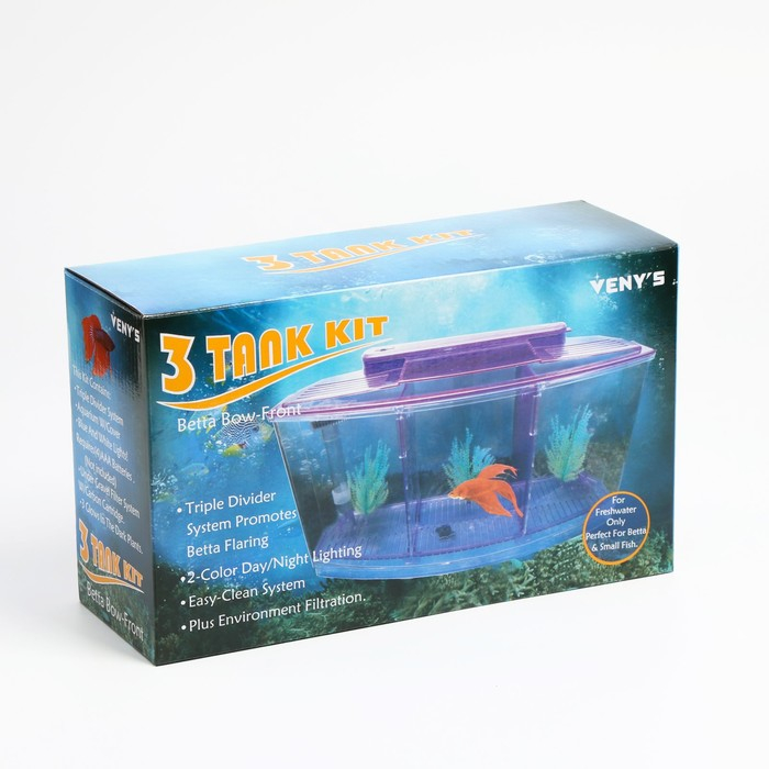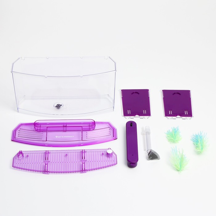 Аквариумный набор трехсекционный, с подсветкой LED, 2,55 л, фиолетовый